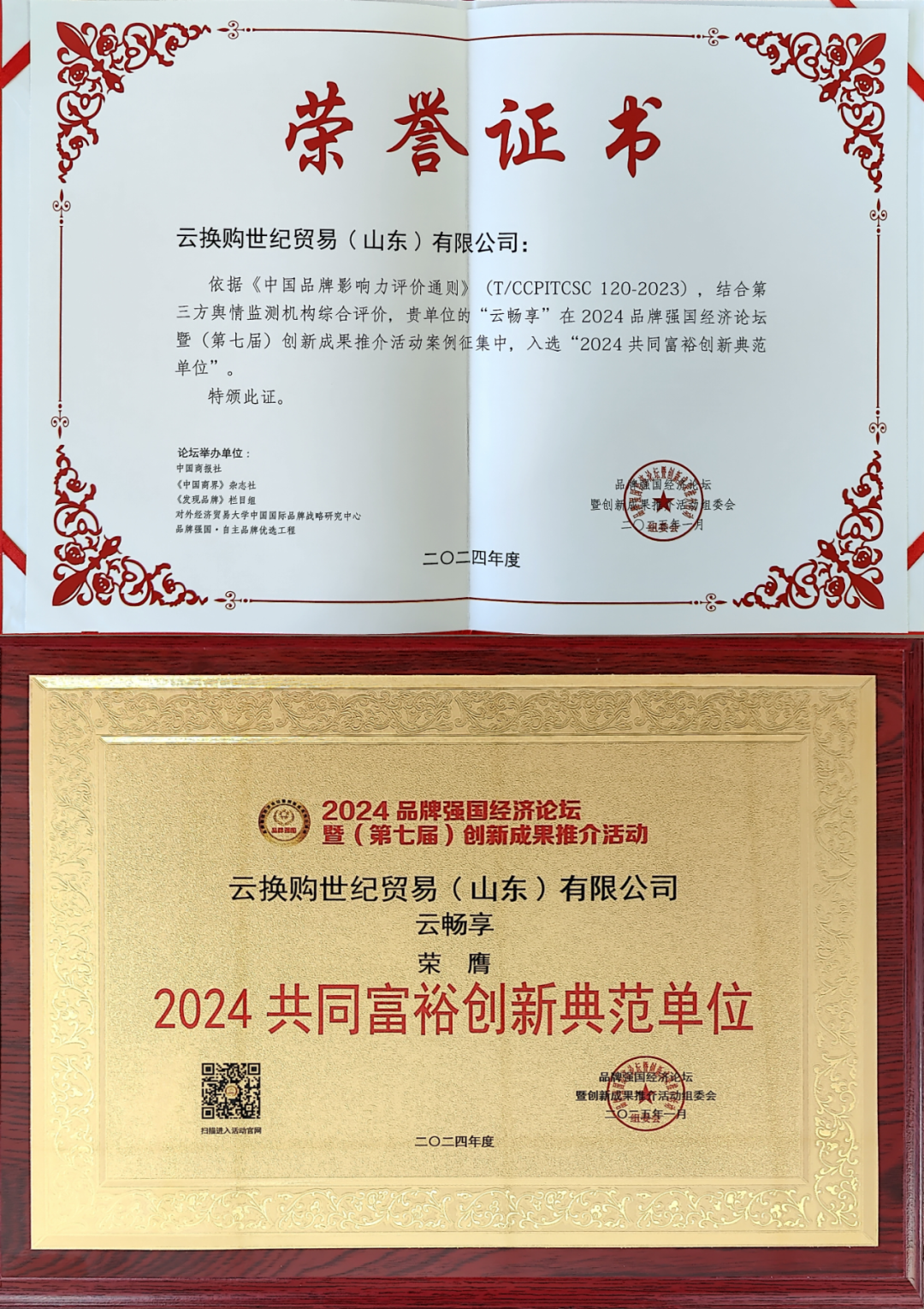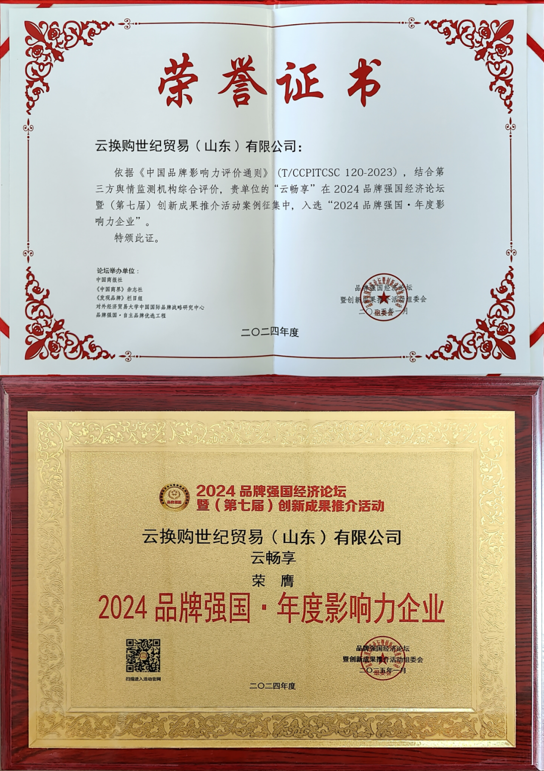 平台荣誉||热烈祝贺葛长青董事长荣膺“2024品牌强国·经济年度人物”荣誉称号!发表时间:2025-01-13 20:55 ![]() ![]() 热烈祝贺葛长青董事长荣膺“2024品牌强国·经济年度人物"荣誉称号! 热烈祝贺云换购世纪贸易(山东)有限公司荣膺“2024品牌强国年度影响力企业”荣誉称号! 热烈祝贺云换购世纪贸易(山东)有限公司荣膺“2024共同富裕创新典范单位"荣誉称号! ![]() ![]() ![]() 中国质量万里行促进会原会长刘兆彬 ![]() 国家市场监督管理总局发展研究中心副主任陈云华 ![]() 中国商报社社长总编辑、全国商报联合会会长胡斌 01. 主题及流程 本届活动以“发展新质生产力 打造强国品牌”为主题,由主题报告会、封闭沙龙、贵宾会晤、嘉宾大合影、专题研讨会、行业标准践行启动仪式、数字生活小程序上线发布仪式、“进出口供应链+检验检测”创新服务模式签约仪式、“中国品牌影响力评价”签约仪式、循环经济项目签约仪式、《2024品牌经济创新发展案例成果报告》发布仪式、大会新闻中心媒体专访、线上云直播等部分组成。 02. 活动情况简介 本届活动深入贯彻党的二十届三中全会“健全因地制宜发展新质生产力体制机制”重要精神,积极落实中共中央国务院《关于加快建设全国统一大市场的意见》和国家发展改革委等部门《关于新时代推进品牌建设的指导意见》“提高中国品牌影响力和认识度”等要求,围绕新产业新模式新技术等创新成果应用、数字经济与人工智能、品牌国际化传播与品牌定位、品牌文化传播、专精特新企业培育、产业链供应链质量联动、消费品升级迭代和品质提升、民族品牌同国际标准接轨、讲好中国品牌故事等内容进行深入探讨。 ![]() 值得关注的是,本次活动邀请了全国二十余家地方政府、园区优秀代表参会,其中甘肃省武威市文体广电和旅游局副局长张超、四川省苍溪县人大常委会副主任吴勇、云南省丘北县人民政府副县长李飞、吉林省临江市委宣传部副部长李艳生、江苏省姜堰经济开发区党工委副书记王进、江苏省南京建邺高新区管委会副主任张佐良、望城经开区产业发展局党支部书记夏志刚等,在大会上分享了当地独具魅力的历史文化、优美的生态旅居环境、特色产业集聚发展优势、极具发展潜力的招商项目、企业创新创业政策扶持、优质的投资营商环境,以及特色资源品牌展览展示,引发现场各级领导嘉宾、专家学者、企业家的强烈共鸣,进一步增进了政商产学研协同合作创新,推动区域经济更高质量发展。 03. 所获证书 ![]() ![]() ![]() |